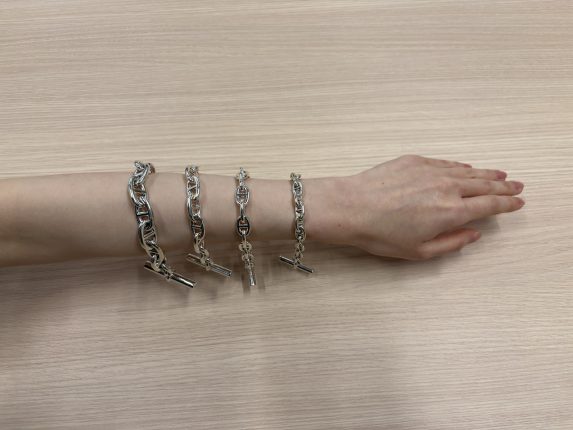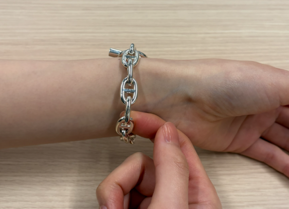 シェーヌダンクルは、手首周り+1.5~2.5cmが、見た目と付け心地のバランスがとりやすい目安とされています。