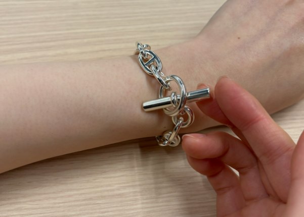 | 他ブランド、またはエルメスの他アクセサリーと比較した違いを教えてください。 | 他のシルバーブランドと比較すると、上品さが際立ちます。PMは特にその傾向が強く、きれいめなスタイルにも自然に馴染む点が印象的です。 |