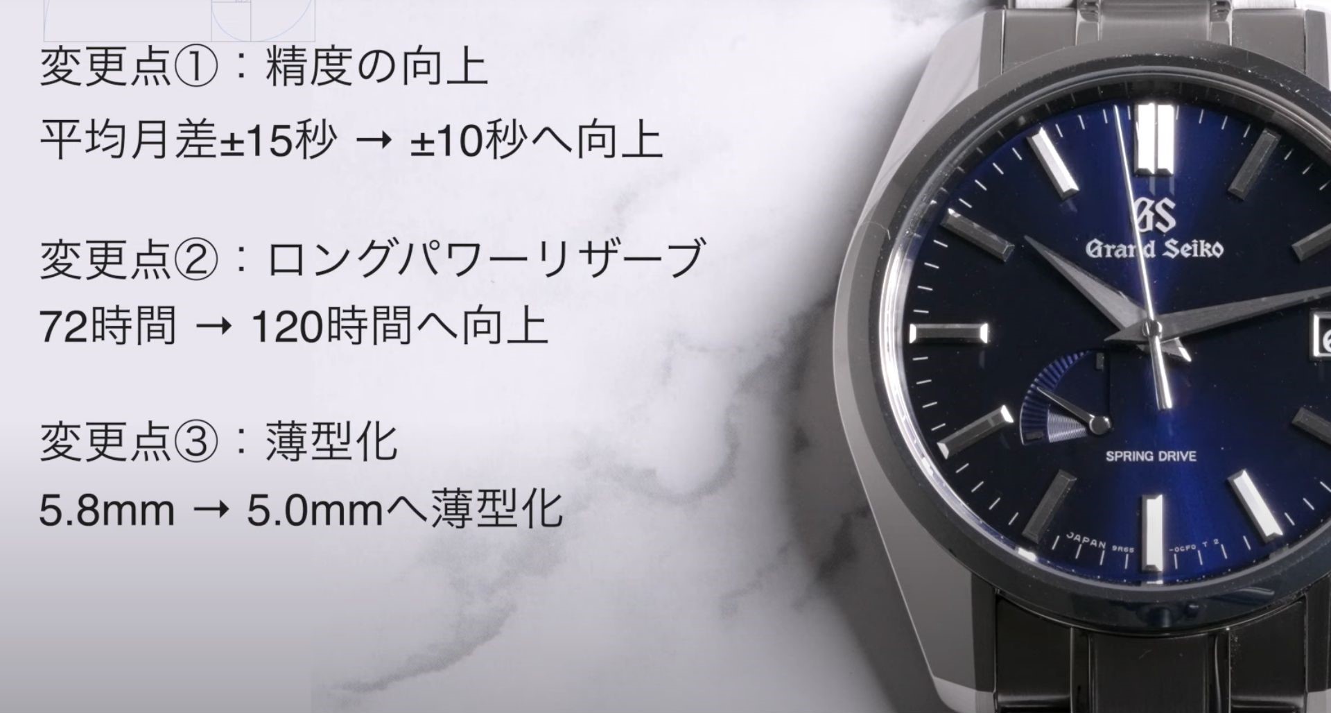 新旧のスプリングドライブの主な変更点を3つご紹介します。